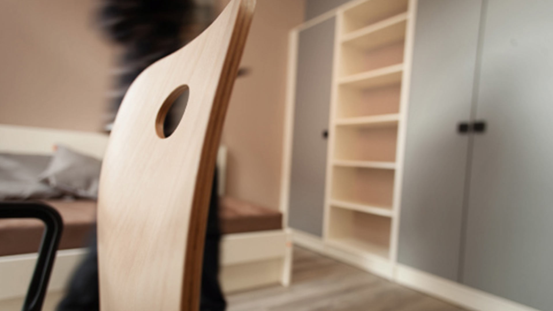 • Habitación individual con baño privado, mesa de estudios, silla, armario, cortinas, lámparas